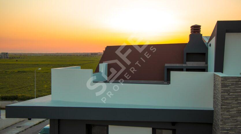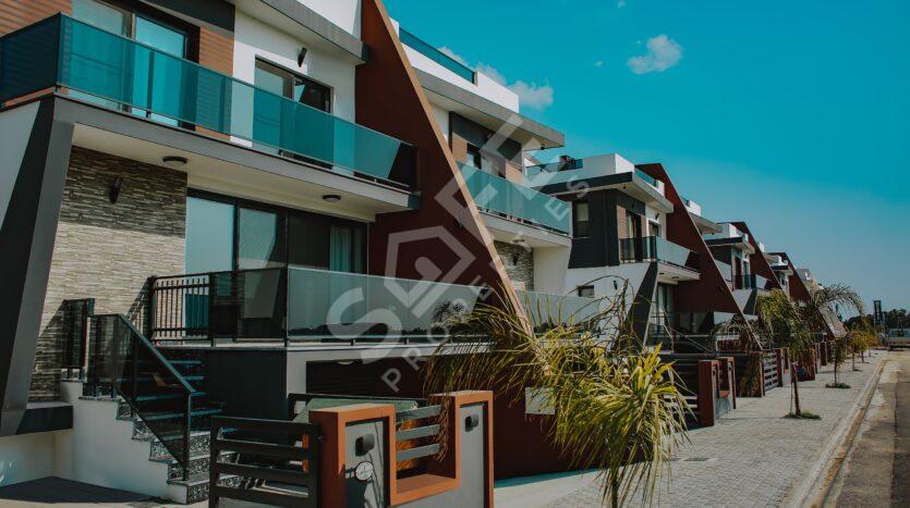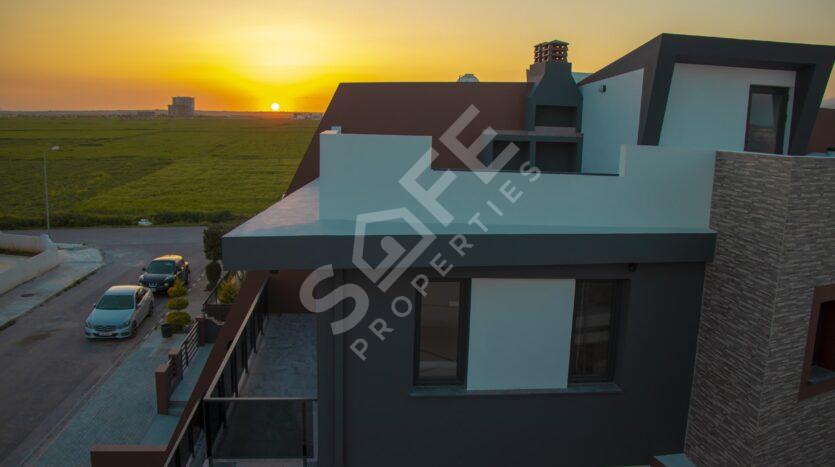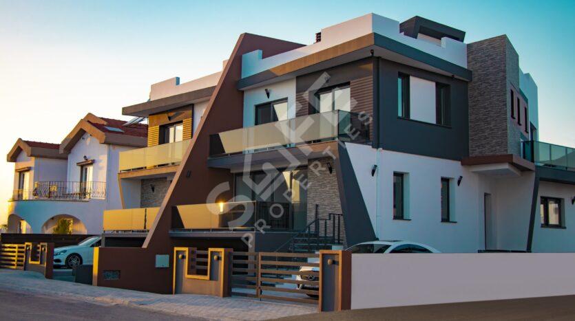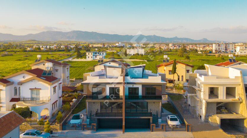 The luxurious Independent Life Villas in Iskele, North Cyprus, featuring stunning 3+1 triplex villas with a swimming pool. These villas offer spacious living areas with a gross area of 410 m², net area of 360 m², and a closed area of 310 m², making them perfect for modern family living.