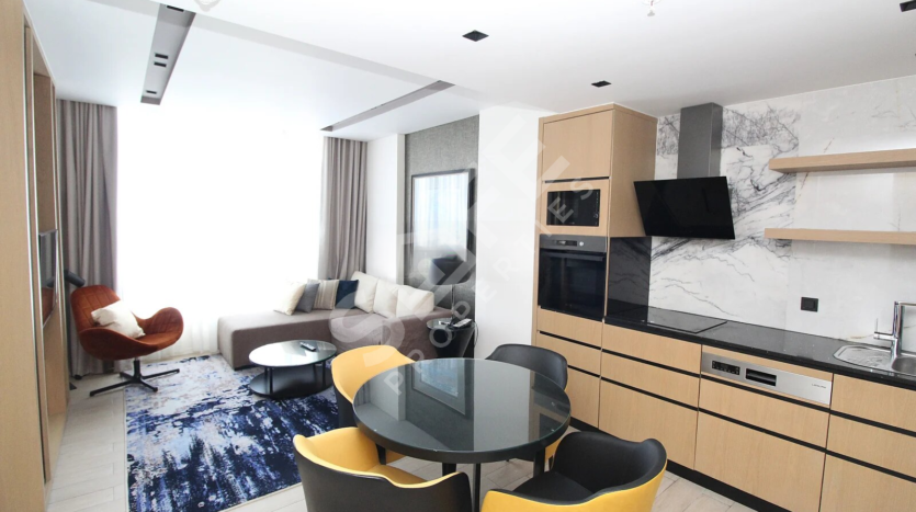 The fully furnished units come with furniture, household appliances, a TV, air conditioning, a central heating system, a shower cabin, laminate flooring, ceramic tiles, Wi-Fi, a central satellite system, theft and fire alarms, high ceilings, and steel entry doors