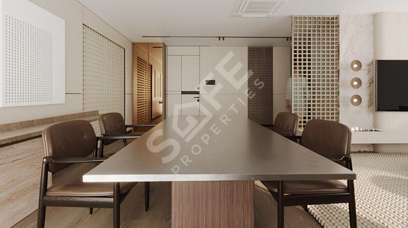 The complex spans 15 floors, including a ground floor, mezzanine, and 14 residential levels. La Mare also includes 13 commercial units situated across select basement, ground, and mezzanine levels, providing convenient shopping options for residents. Each apartment is equipped with modern heating via a combi boiler and air conditioning to ensure year-round comfort. Floor-to-ceiling windows maximize natural light and showcase the stunning sea views.