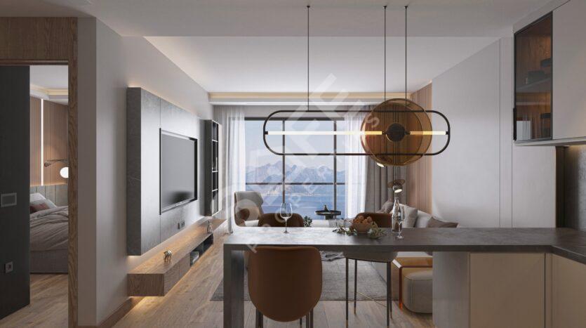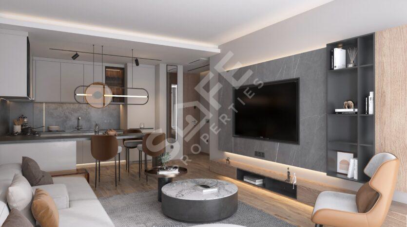 Equipped with a 24/7 security system, the project ensures a safe and peaceful living environment. There are also two modern elevators for residents’ convenience. The property is within walking distance to Terracity Shopping Mall, Örnek Köy, Lara Beaches, Düden Waterfall, hospitals, schools, entertainment centers, walking paths, and sports areas. Additionally, it is only a 10-minute drive to the airport and is situated near vital health facilities.